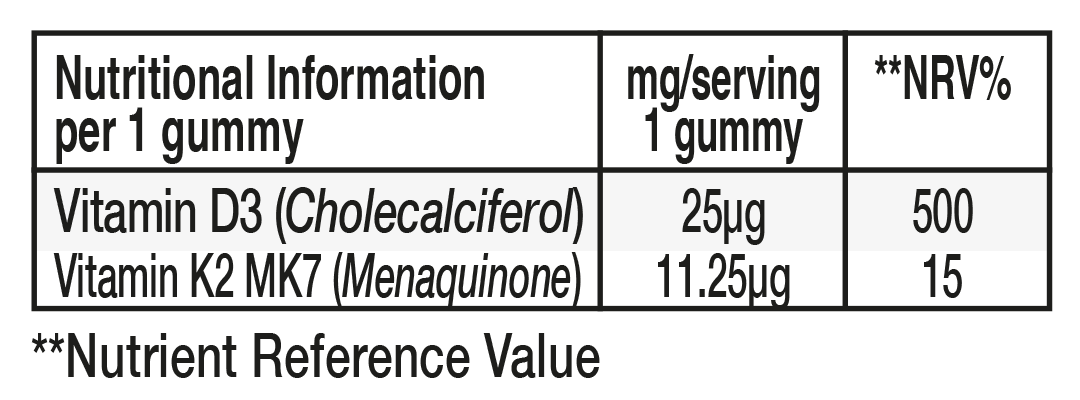 Each Vit-D+K2 gummy contains a huge 1000IU per serving. Vitamin D deficiency is common in the UK due to low sunlight exposure and inadequate dietary intake. With figures reporting that as many as 40% of adults may be deficient. Starpowa's Vit-D+K2 is clinically proven to contribute to support the function of the immune system, delivering more than the daily required amount in one tasty gummy. The inclusion of our vegan vitamin K2 (found primarily in animal-based foods) works with the vitamin D to deliver the proteins to your bones.